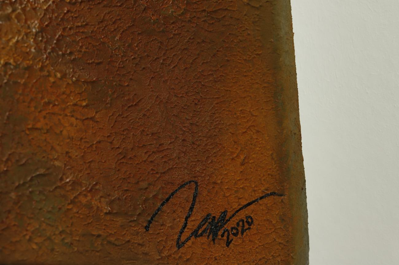 Das Bild hat die Beschreibung "Kunst aus Rost. Abstrakte Bilder aus echtem Rost auf Leinwand." und der der durch den Künstler vergebene Titel ist: "Ohne Titel" - Abstraktes Acrylbild Nr. 1751.
