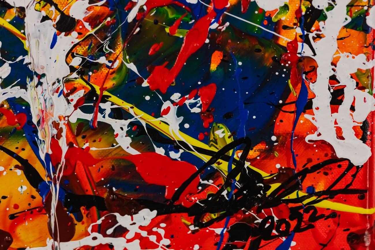 Hallo, ich bin Alex Zerr, der Künstler hinter diesem Gemälde. In meinem Atelier in Bad Lippspringe erschaffe ich abstrakte Acrylbilder, überwiegend im Action-Painting-Stil. Meißtens mit Acrylfarben und auf sehr großen XXL-Leinwänden, die meinem kreativen Prozess besonders viel Freiheit erlauben und oft zu beeindruckenden Gemälden führen.
