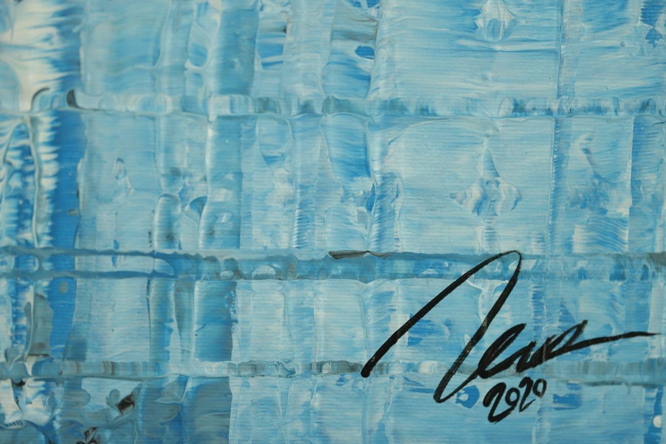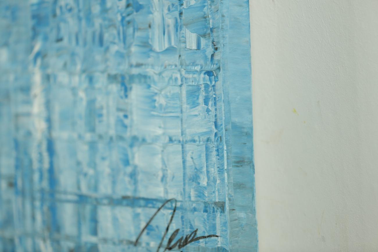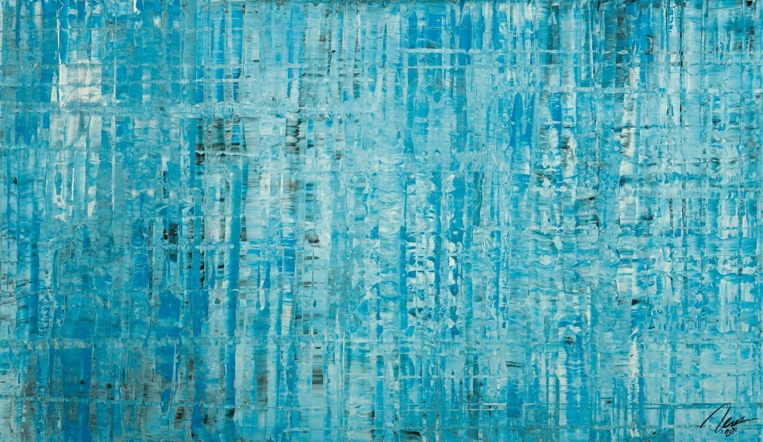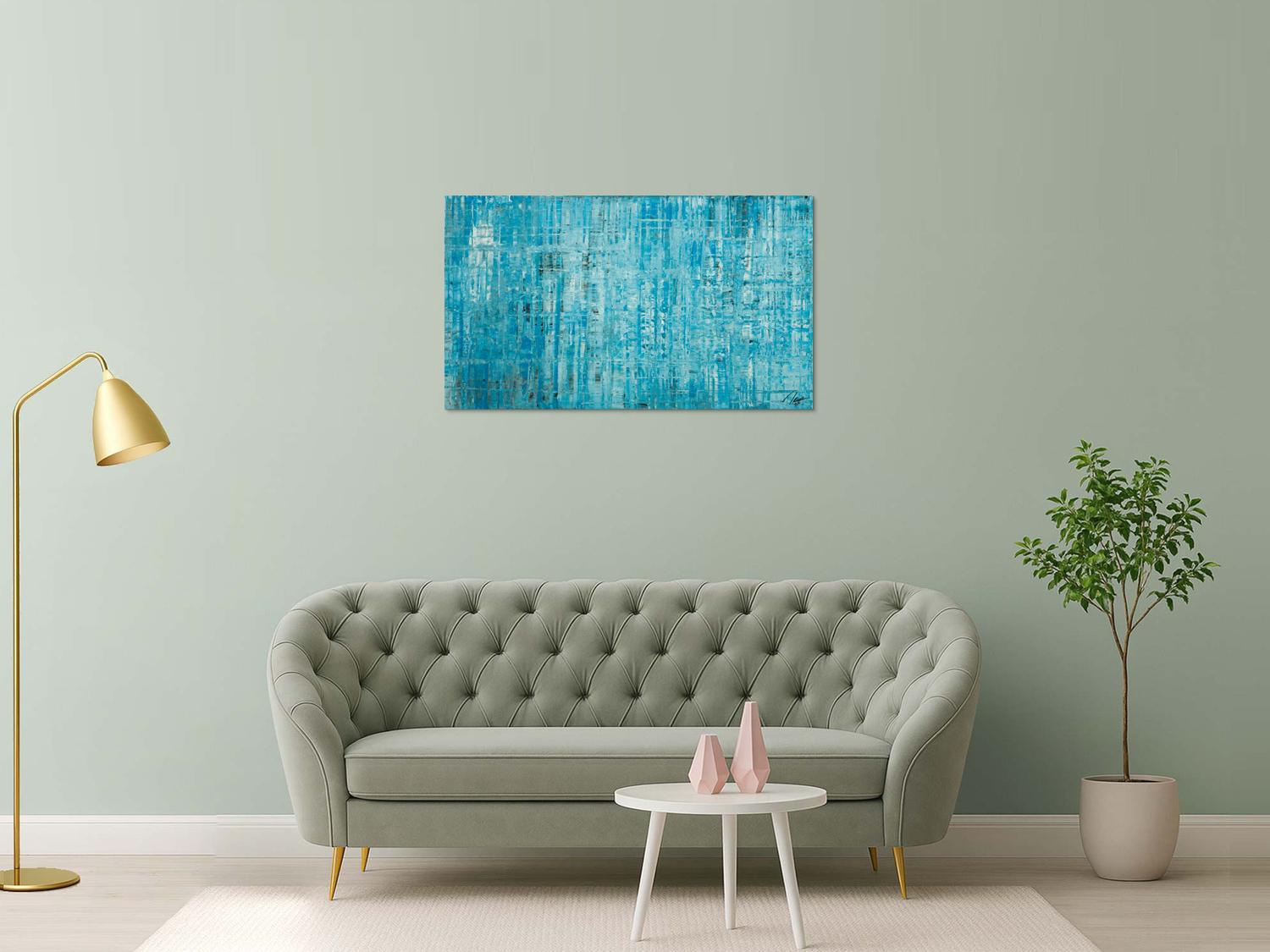 Original Gemälde abstrakt 70x120cm Spachteltechnik zeitgenössisch handgemalt hellblau türkis anthrazit hochwertig