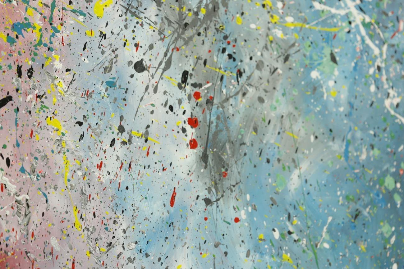 Original Gemälde abstrakt 70x160cm Action Painting expressionistisch handgefertigt anthrazit hellblau rot rosa Unikat