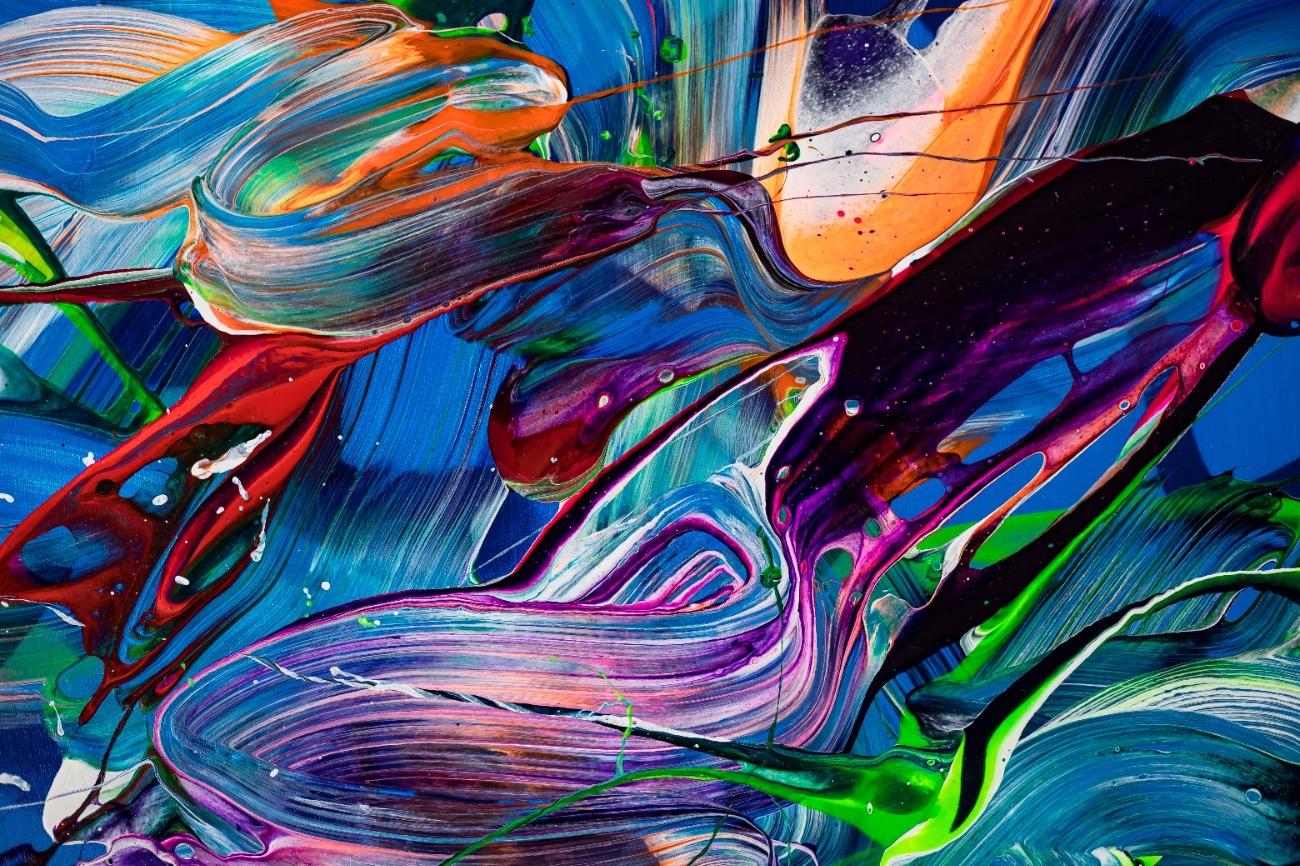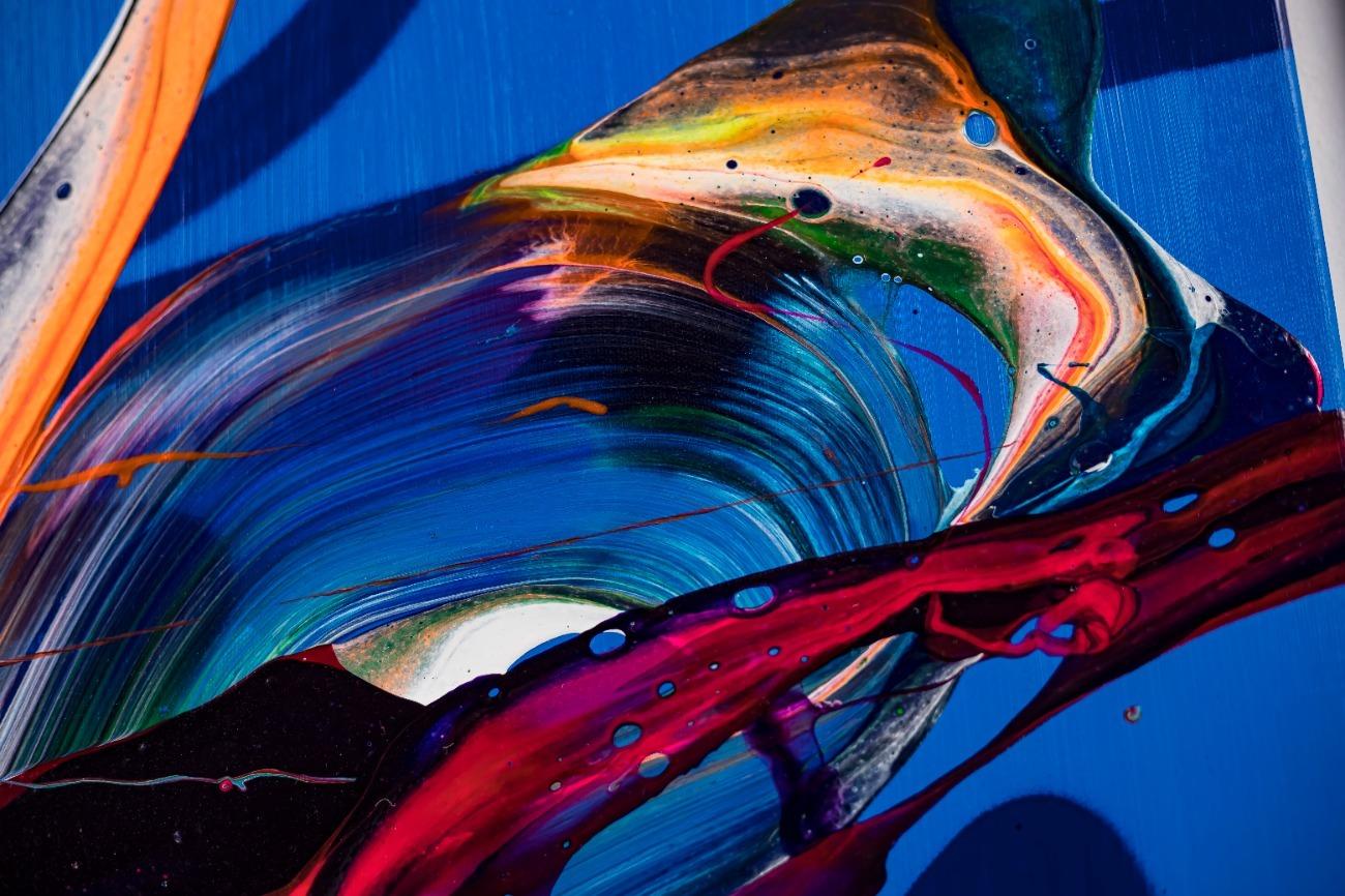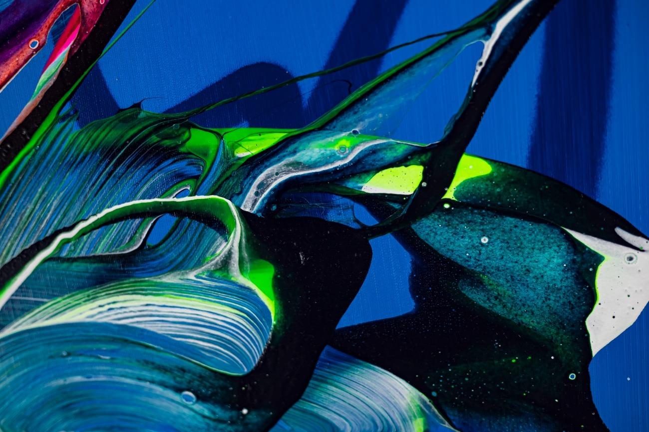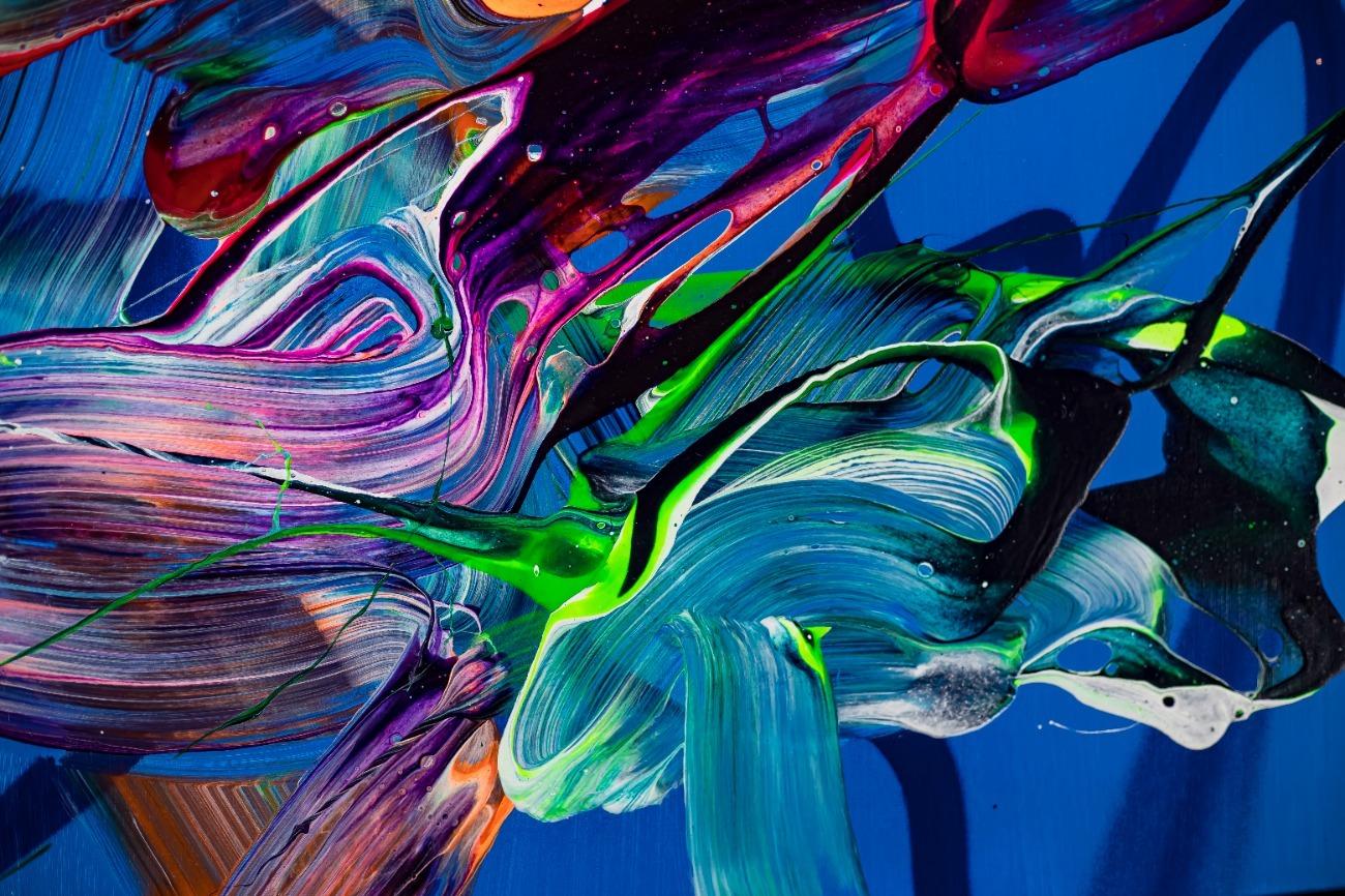 Hallo, ich bin Alex Zerr, der Künstler hinter diesem Gemälde. In meinem Atelier in Bad Lippspringe erschaffe ich abstrakte Acrylbilder, überwiegend im Action-Painting-Stil. Meißtens mit Acrylfarben und auf sehr großen XXL-Leinwänden, die meinem kreativen Prozess besonders viel Freiheit erlauben und oft zu beeindruckenden Gemälden führen.