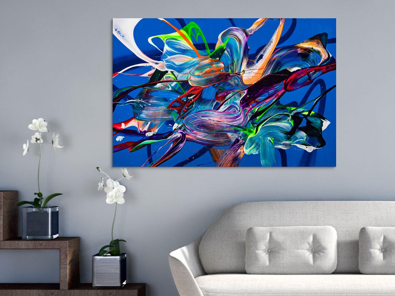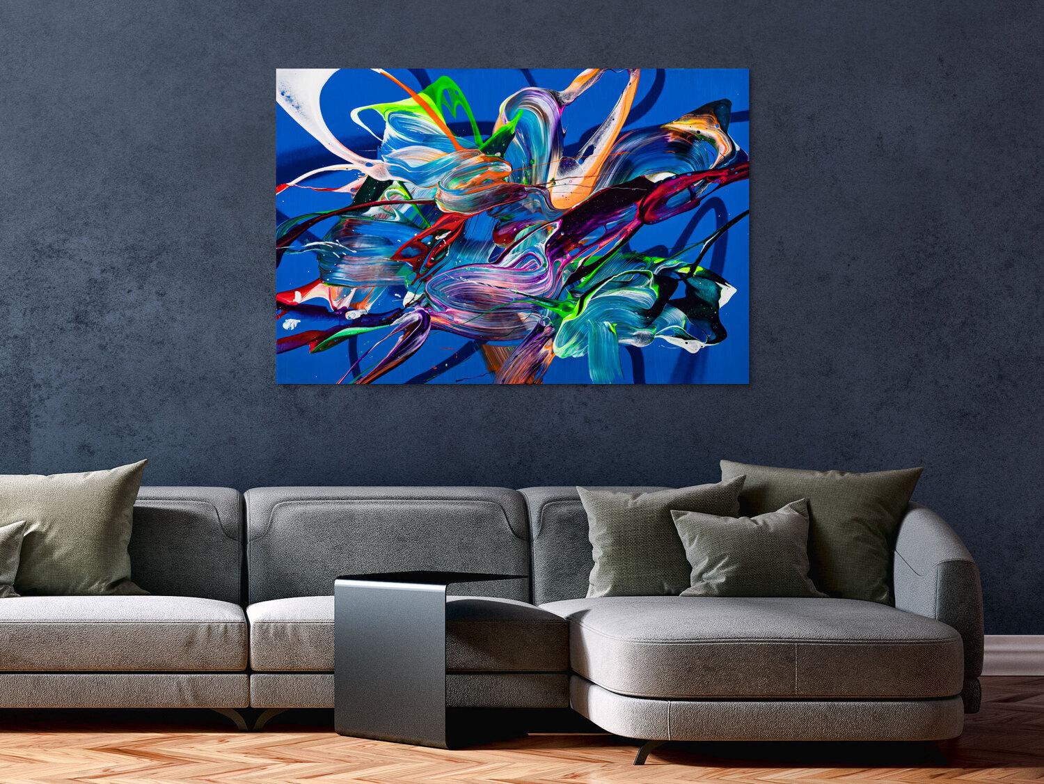 Die großformatigen, abstrakten Acrylgemälde sind ideal für Wohnzimmer, Schlafzimmer, Büros oder Geschäftsräume. Sie setzen farbenfrohe Akzente und schaffen eine lebendige, individuelle Atmosphäre die Sie und Ihre Gäste oder Kunden beeindrucken wird.