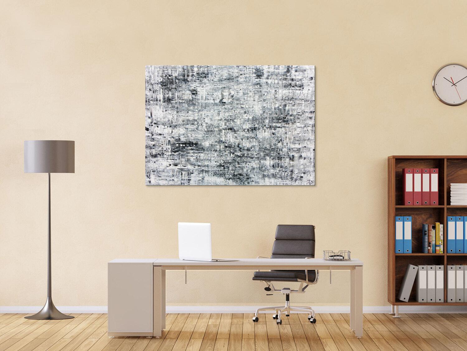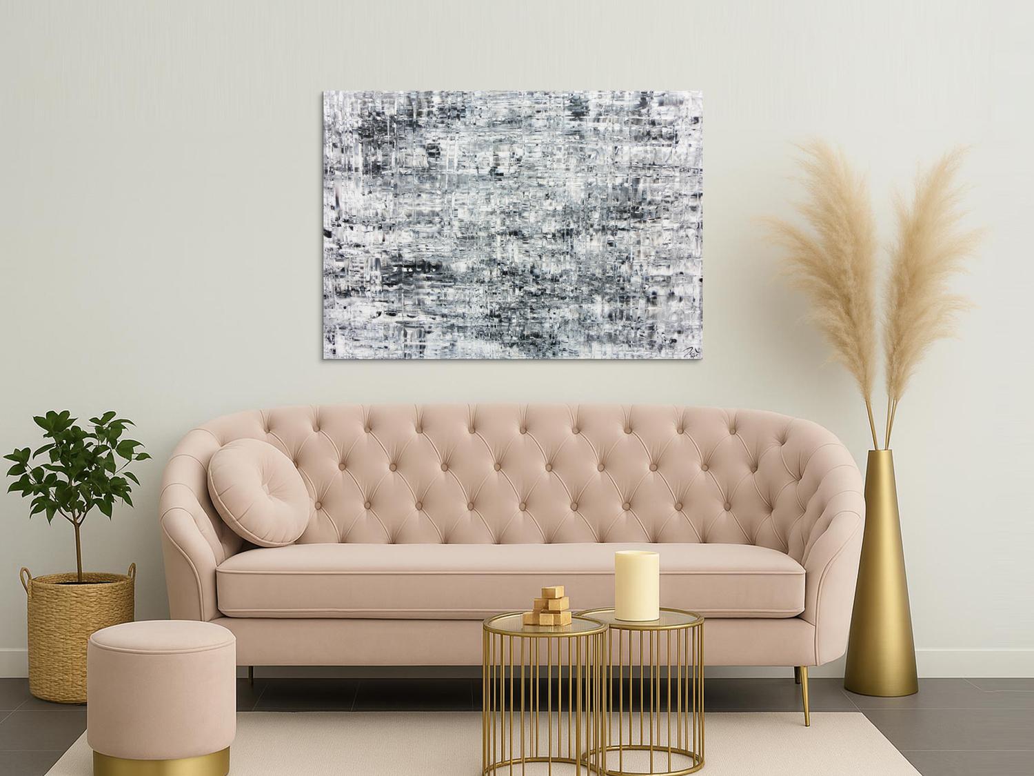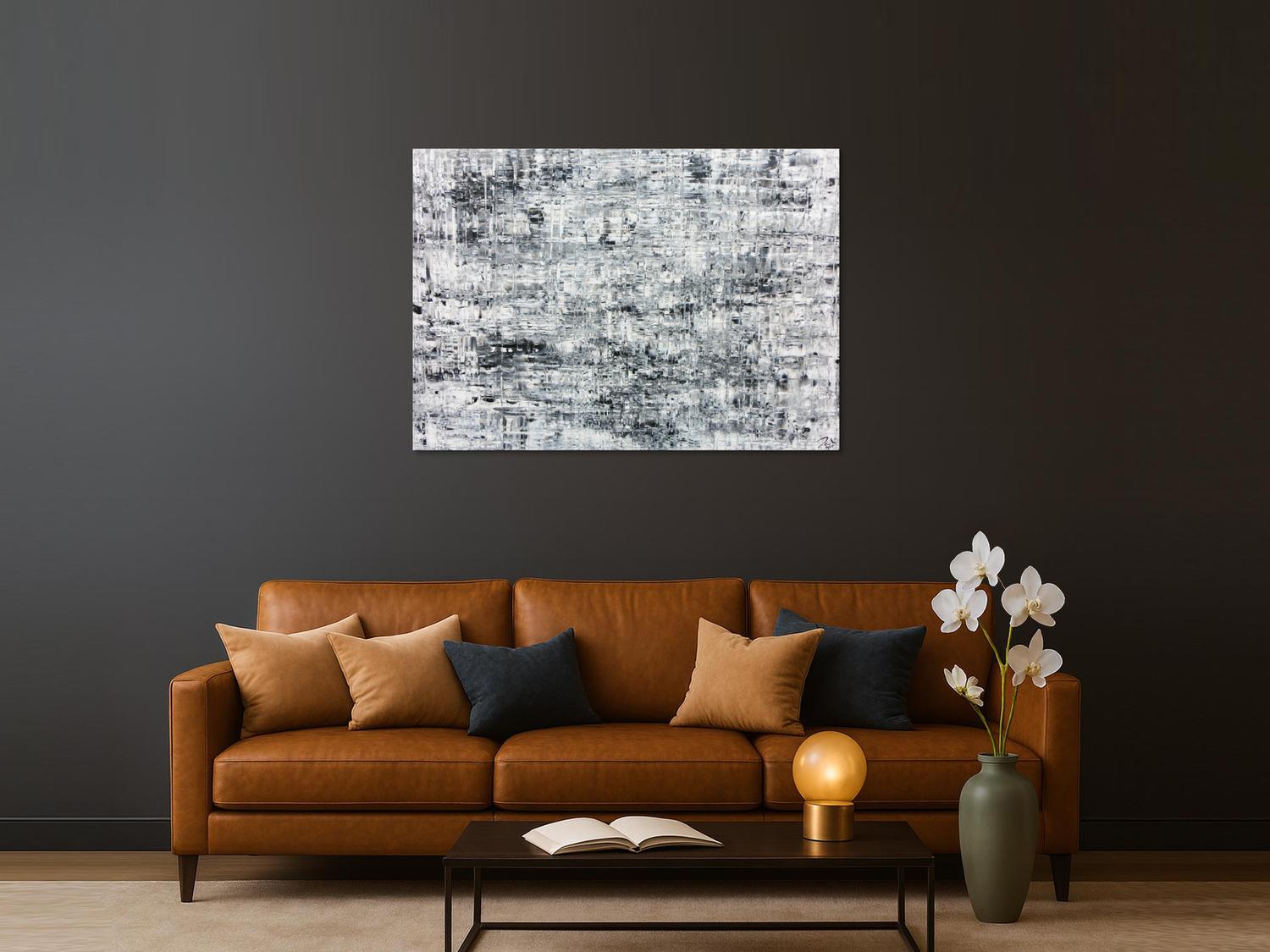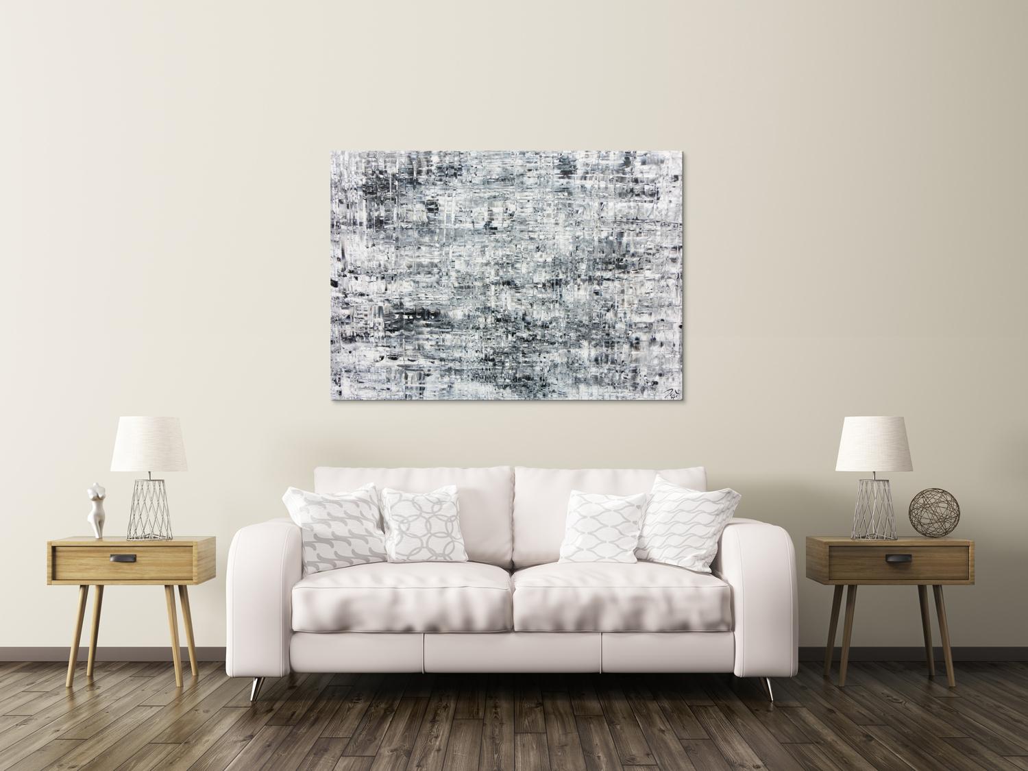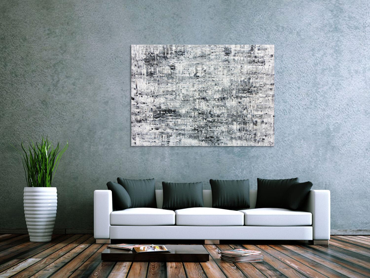 Abstraktes Gemälde auf Leinwand Schlichtes abstraktes Acrylbild in schwarz weiß grau in 100x140cm von Alex Zerr