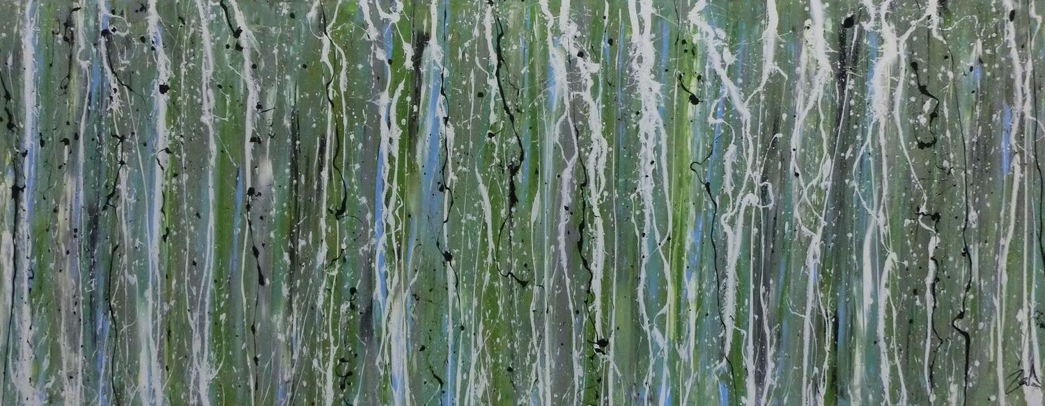 Abstraktes Gemälde auf Leinwand Schlichtes Acrylbild abstrakt modern grün in 70x180cm von Alex Zerr