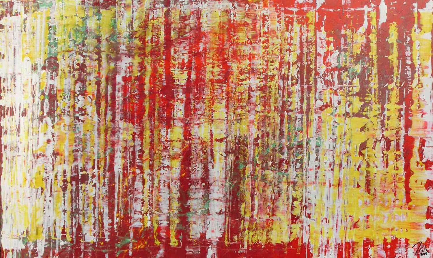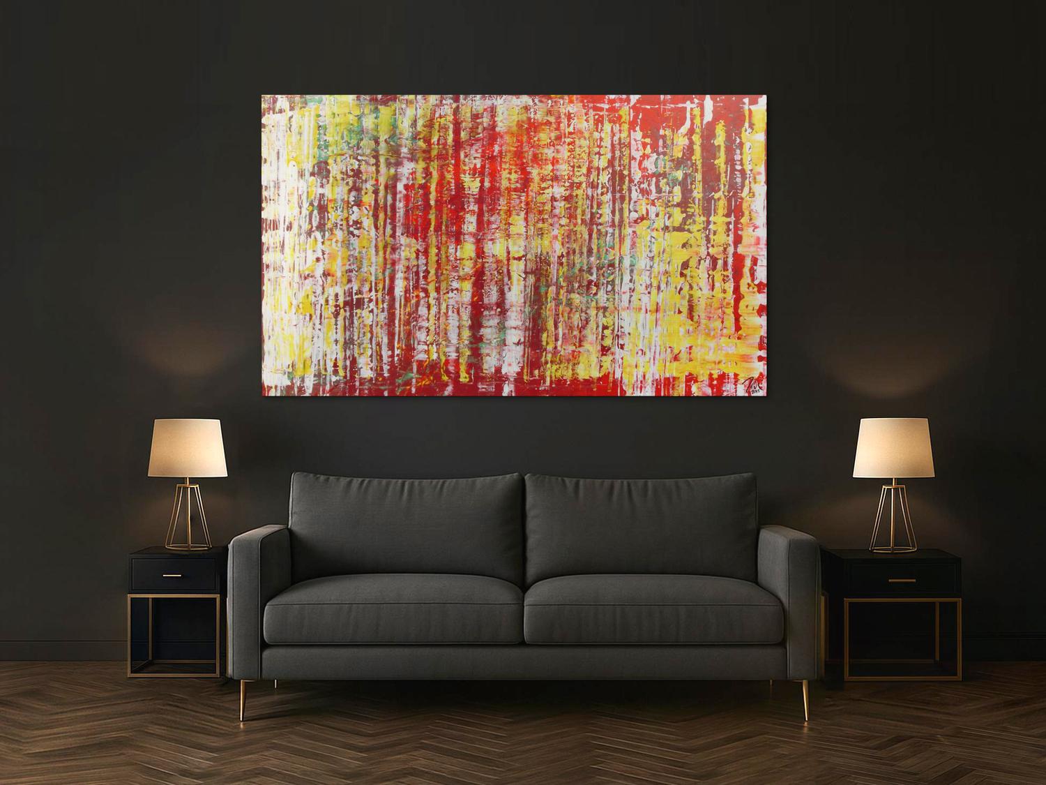 Abstraktes Gemälde auf Leinwand Schönes abstraktes Acrylgemälde in rot weiß und gelb in 120x200cm von Alex Zerr