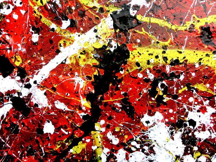 Sehr abstraktes Acrylgemälde in dunklen Farben mit schwarz weiß rot und gelb