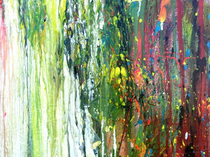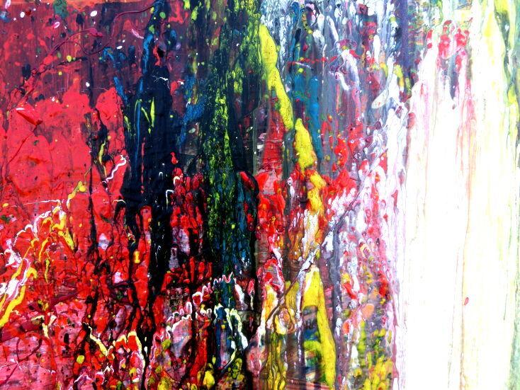 Dieses Werk ist wie alle meine Bilder: spontan entstanden, ganz intuitiv und ohne festes Konzept, und spiegelt oft meine momentane Stimmung wider wie auf der Leinwand festgehalten wurde.