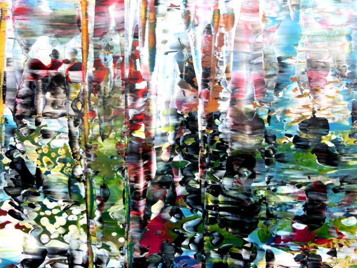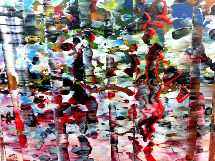 Dieses Werk ist wie alle meine Bilder: spontan entstanden, ganz intuitiv und ohne festes Konzept, und spiegelt oft meine momentane Stimmung wider wie auf der Leinwand festgehalten wurde.
