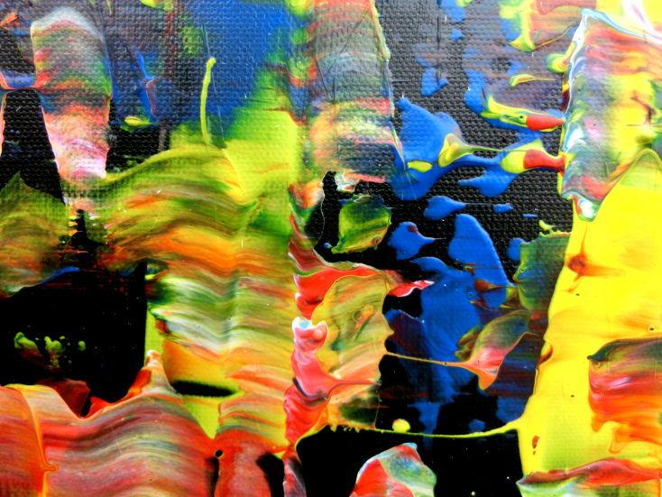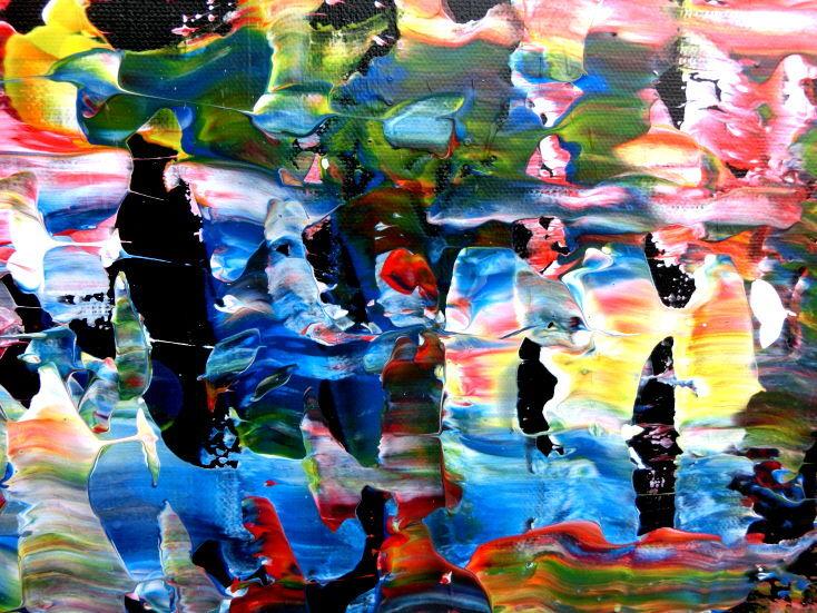 Dieses Werk ist wie alle meine Bilder: spontan entstanden, ganz intuitiv und ohne festes Konzept, und spiegelt oft meine momentane Stimmung wider wie auf der Leinwand festgehalten wurde.