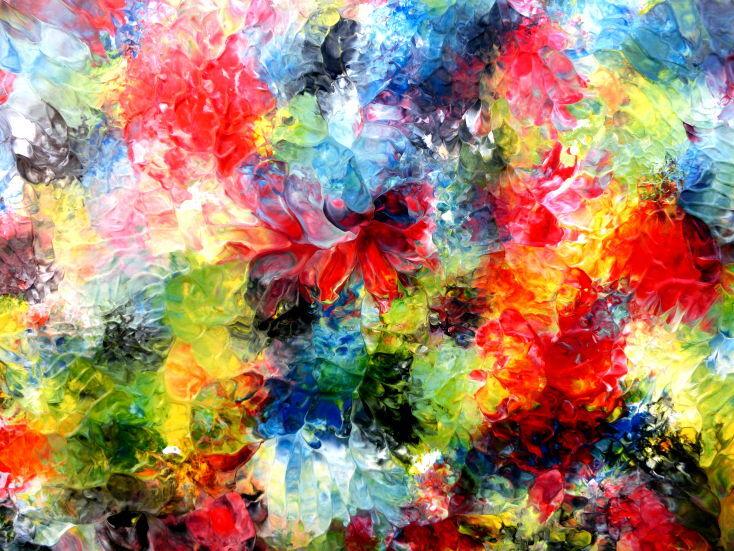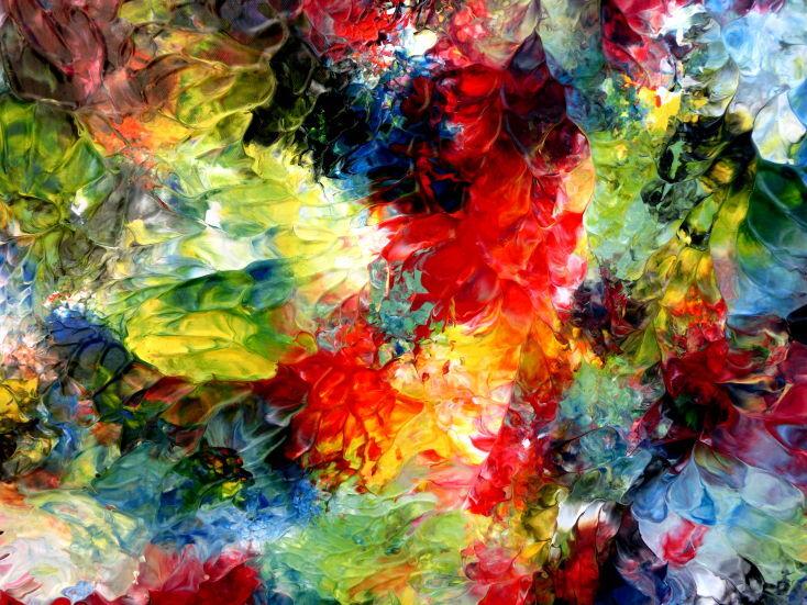 Sehr buntes abstraktes Acrylbild modern mit vielen Farben