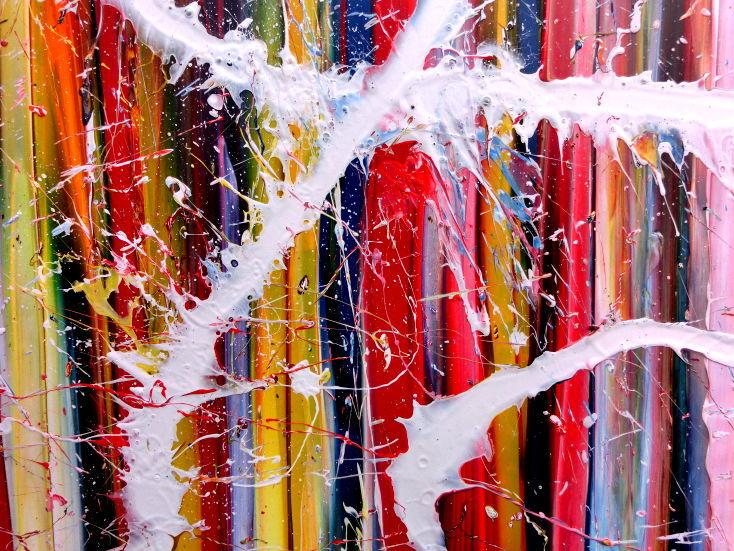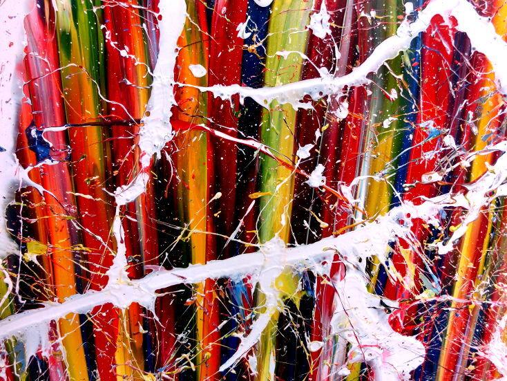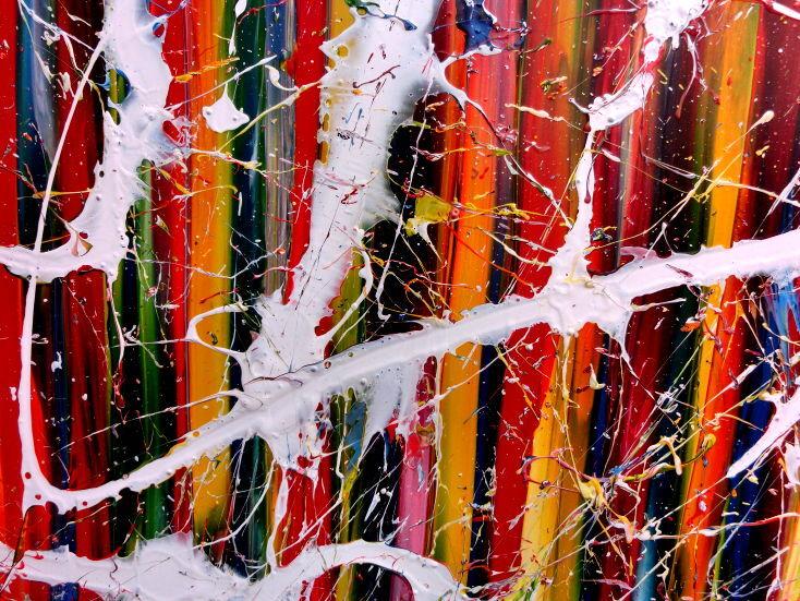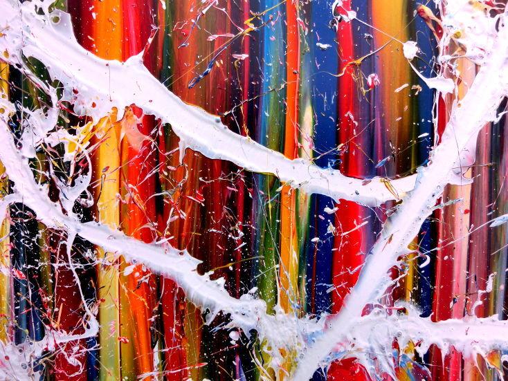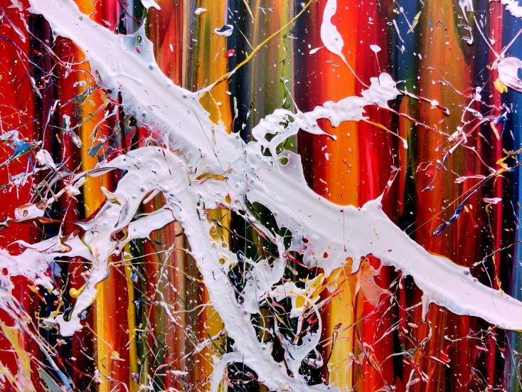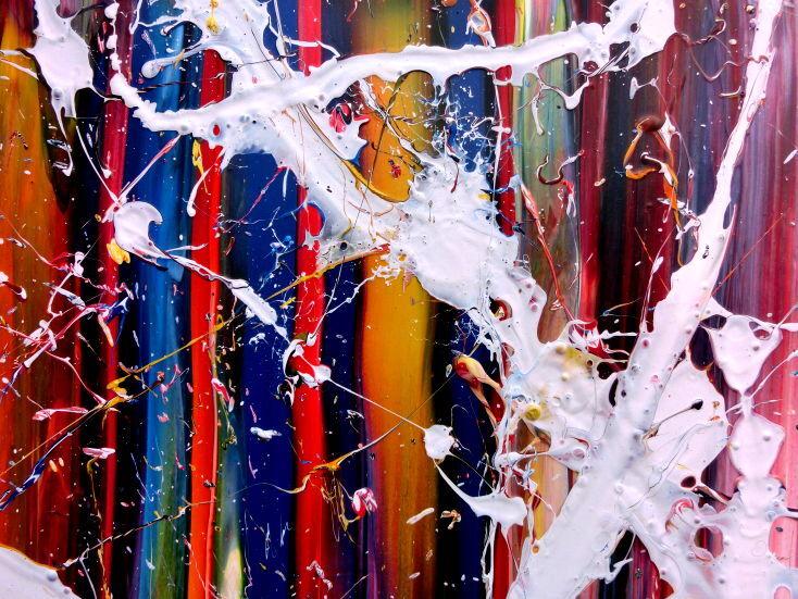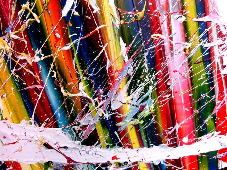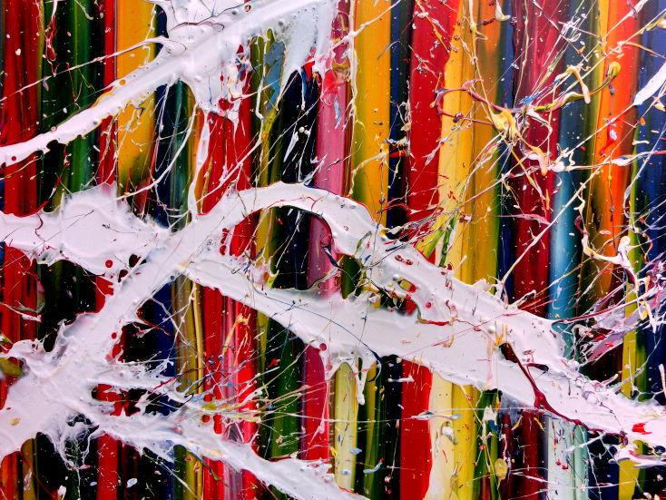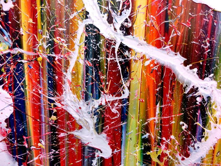 Sehr buntes abstraktes Acrylgemälde modernes Bild bunte Streifen Action Painting