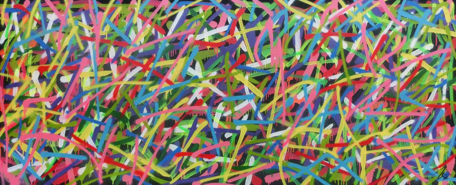 Sehr buntes abstraktes Gemälde Spray Art Kunst aus Spraydosen