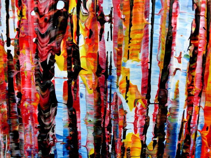Hallo, ich bin Alex Zerr, der Künstler hinter diesem Gemälde. In meinem Atelier in Bad Lippspringe erschaffe ich abstrakte Acrylbilder, überwiegend im Action-Painting-Stil. Meißtens mit Acrylfarben und auf sehr großen XXL-Leinwänden, die meinem kreativen Prozess besonders viel Freiheit erlauben und oft zu beeindruckenden Gemälden führen.