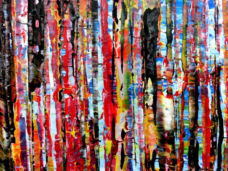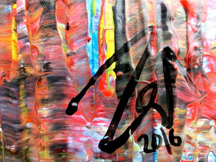 Dieses abstrakte Acrylbild ist ein handgemaltes Original vom Künstler Alex Zerr aus Bad Lisppringe und ist im Jahr 2016 in seinem Atelier entstanden. Das Bild hat eine Größe von 90x150cm und ist bereits auf einem hochwertigen und stabilem Rahmen aufgespannt. Dadurch kann das Bild nach der Lieferung direkt an die Wand gehängt werden und sofort in Ihrem Raum wirken. Alle Seiten des Gemäldes sind passend zum Motiv bemalt, so dass kein zusätzlicher Rahmen benötigt wird.