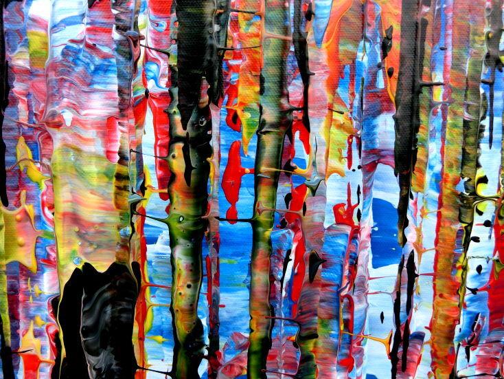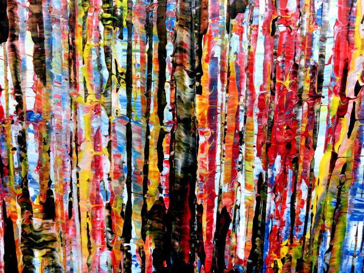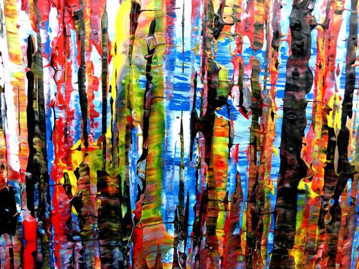 Dieses Werk ist wie alle meine Bilder: spontan entstanden, ganz intuitiv und ohne festes Konzept, und spiegelt oft meine momentane Stimmung wider wie auf der Leinwand festgehalten wurde.