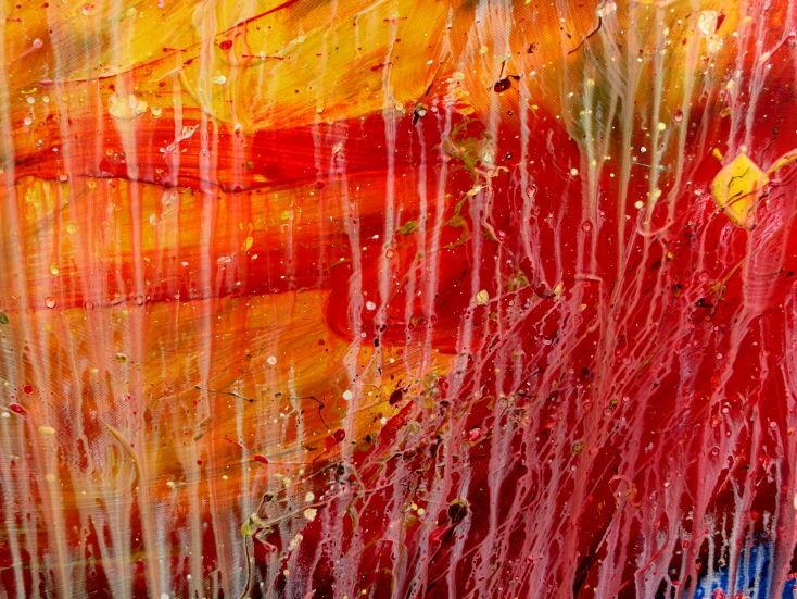 Dieses abstrakte Acrylbild ist ein handgemaltes Original vom Künstler Alex Zerr aus Bad Lisppringe und ist im Jahr 2016 in seinem Atelier entstanden. Das Bild hat eine Größe von 80x180cm und ist bereits auf einem hochwertigen und stabilem Rahmen aufgespannt. Dadurch kann das Bild nach der Lieferung direkt an die Wand gehängt werden und sofort in Ihrem Raum wirken. Alle Seiten des Gemäldes sind passend zum Motiv bemalt, so dass kein zusätzlicher Rahmen benötigt wird.