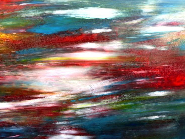 Dieses Werk ist wie alle meine Bilder: spontan entstanden, ganz intuitiv und ohne festes Konzept, und spiegelt oft meine momentane Stimmung wider wie auf der Leinwand festgehalten wurde.