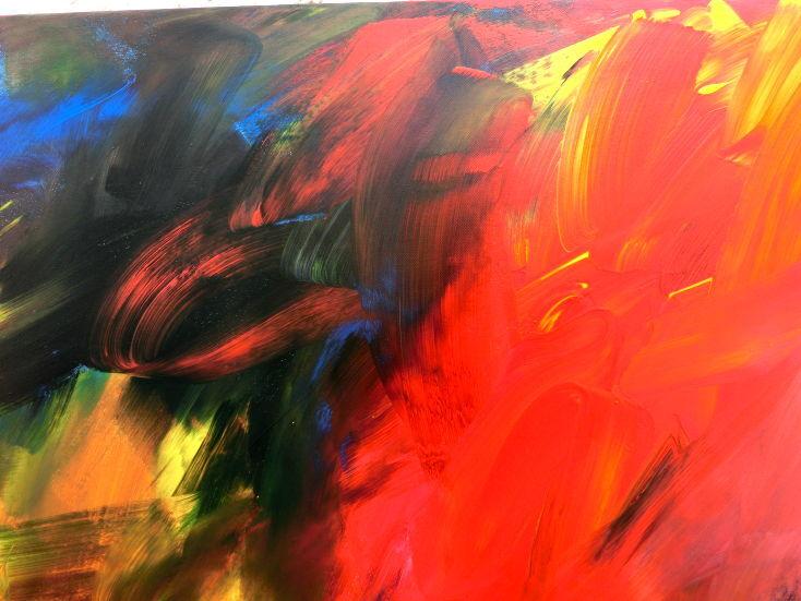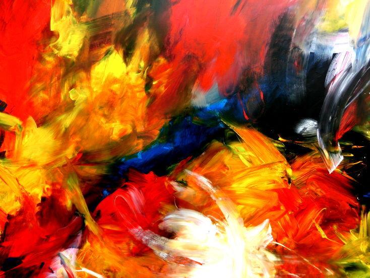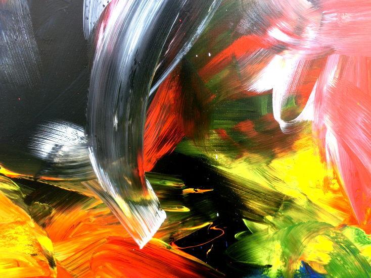 Dieses Werk ist wie alle meine Bilder: spontan entstanden, ganz intuitiv und ohne festes Konzept, und spiegelt oft meine momentane Stimmung wider wie auf der Leinwand festgehalten wurde.