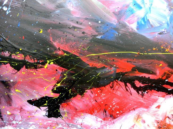 Dieses abstrakte Acrylbild ist ein handgemaltes Original vom Künstler Alex Zerr aus Bad Lisppringe und ist im Jahr 2016 in seinem Atelier entstanden. Das Bild hat eine Größe von 150x200cm und ist bereits auf einem hochwertigen und stabilem Rahmen aufgespannt. Dadurch kann das Bild nach der Lieferung direkt an die Wand gehängt werden und sofort in Ihrem Raum wirken. Alle Seiten des Gemäldes sind passend zum Motiv bemalt, so dass kein zusätzlicher Rahmen benötigt wird.