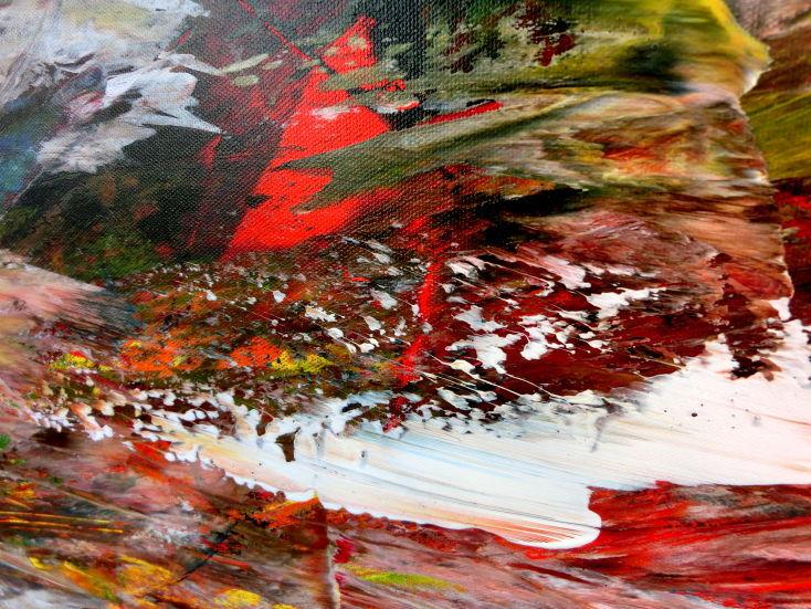 Dieses abstrakte Acrylbild ist ein handgemaltes Original vom Künstler Alex Zerr aus Bad Lisppringe und ist im Jahr 2016 in seinem Atelier entstanden. Das Bild hat eine Größe von 100x160cm und ist bereits auf einem hochwertigen und stabilem Rahmen aufgespannt. Dadurch kann das Bild nach der Lieferung direkt an die Wand gehängt werden und sofort in Ihrem Raum wirken. Alle Seiten des Gemäldes sind passend zum Motiv bemalt, so dass kein zusätzlicher Rahmen benötigt wird.