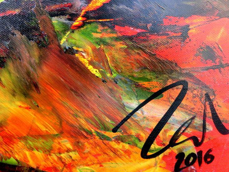 Das Bild ist vom Künster Alex Zerr auf der Vorderseite signiert ggf. ist auf der Rückseite des Bildes der Handabdruck des Künstlers zu finden. Dadurch erhält das Bild ein nicht zu kopierendes und persönliches "Siegel", wodurch Ihnen die Echtheit garantiert wird.