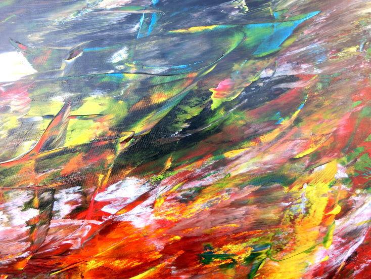 Dieses Werk ist wie alle meine Bilder: spontan entstanden, ganz intuitiv und ohne festes Konzept, und spiegelt oft meine momentane Stimmung wider wie auf der Leinwand festgehalten wurde.