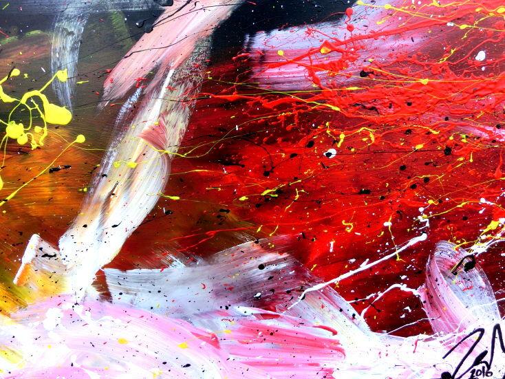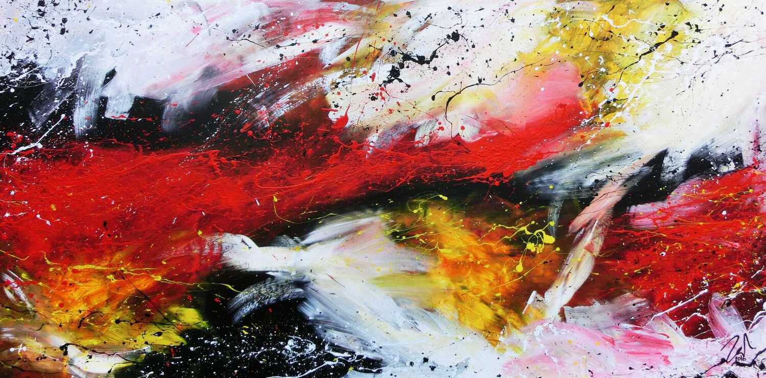 Dieses abstrakte Acrylbild ist ein handgemaltes Original vom Künstler Alex Zerr aus Bad Lisppringe und ist im Jahr 2016 in seinem Atelier entstanden. Das Bild hat eine Größe von 100x200cm und ist bereits auf einem hochwertigen und stabilem Rahmen aufgespannt. Dadurch kann das Bild nach der Lieferung direkt an die Wand gehängt werden und sofort in Ihrem Raum wirken. Alle Seiten des Gemäldes sind passend zum Motiv bemalt, so dass kein zusätzlicher Rahmen benötigt wird.