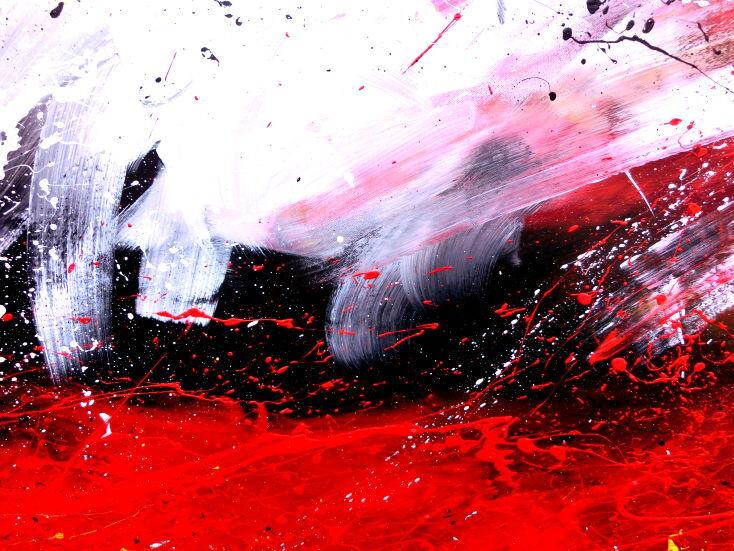 Sehr modernes abstraktes Gemälde in weiß schwarz rot