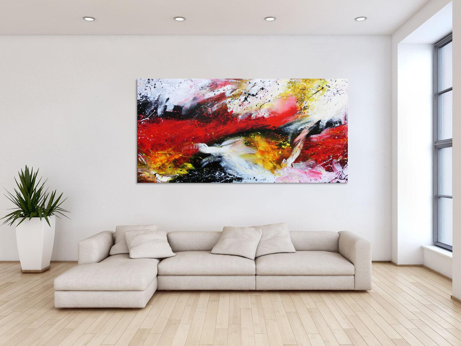 Die großformatigen, abstrakten Acrylgemälde sind ideal für Wohnzimmer, Schlafzimmer, Büros oder Geschäftsräume. Sie setzen farbenfrohe Akzente und schaffen eine lebendige, individuelle Atmosphäre die Sie und Ihre Gäste oder Kunden beeindrucken wird.