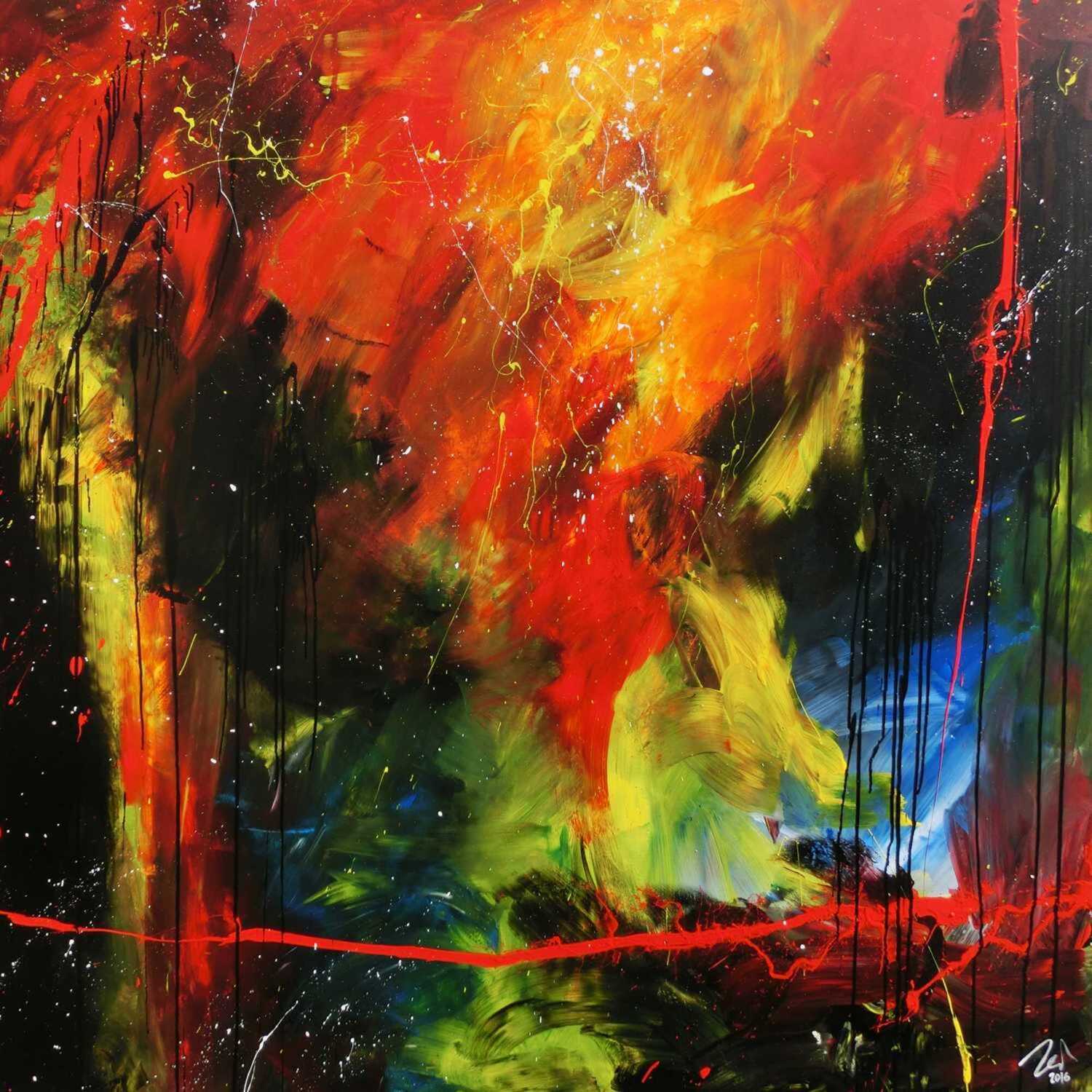 Dieses abstrakte Acrylbild ist ein handgemaltes Original vom Künstler Alex Zerr aus Bad Lisppringe und ist im Jahr 2016 in seinem Atelier entstanden. Das Bild hat eine Größe von 150x150cm und ist bereits auf einem hochwertigen und stabilem Rahmen aufgespannt. Dadurch kann das Bild nach der Lieferung direkt an die Wand gehängt werden und sofort in Ihrem Raum wirken. Alle Seiten des Gemäldes sind passend zum Motiv bemalt, so dass kein zusätzlicher Rahmen benötigt wird.
