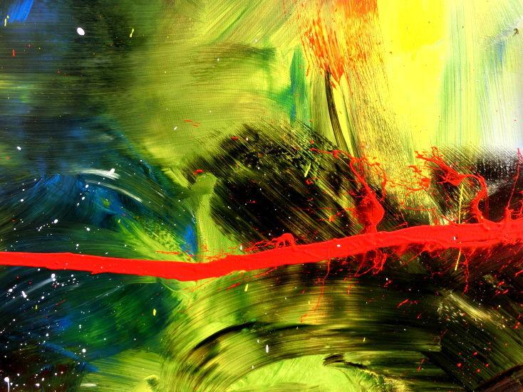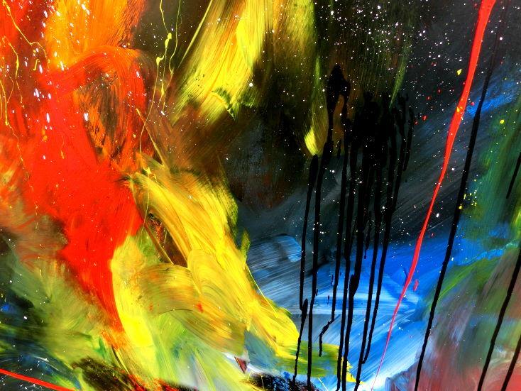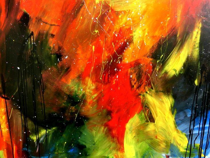 Dieses Werk ist wie alle meine Bilder: spontan entstanden, ganz intuitiv und ohne festes Konzept, und spiegelt oft meine momentane Stimmung wider wie auf der Leinwand festgehalten wurde.