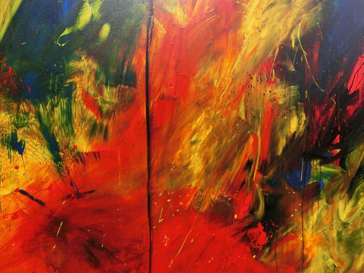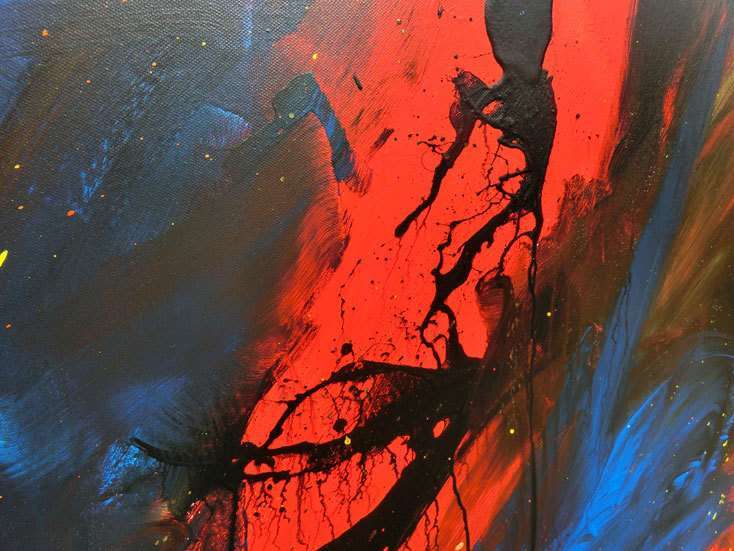 Dieses abstrakte Acrylbild ist ein handgemaltes Original vom Künstler Alex Zerr aus Bad Lisppringe und ist im Jahr 2015 in seinem Atelier entstanden. Das Bild hat eine Größe von 120x200cm und ist bereits auf einem hochwertigen und stabilem Rahmen aufgespannt. Dadurch kann das Bild nach der Lieferung direkt an die Wand gehängt werden und sofort in Ihrem Raum wirken. Alle Seiten des Gemäldes sind passend zum Motiv bemalt, so dass kein zusätzlicher Rahmen benötigt wird.